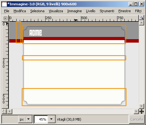 Il passaggio successivo è la preparazione della grafica per l'utilizzo nelle pagine vere e proprie; nella figura sono evidenziate le parti che andrò a utilizzare: